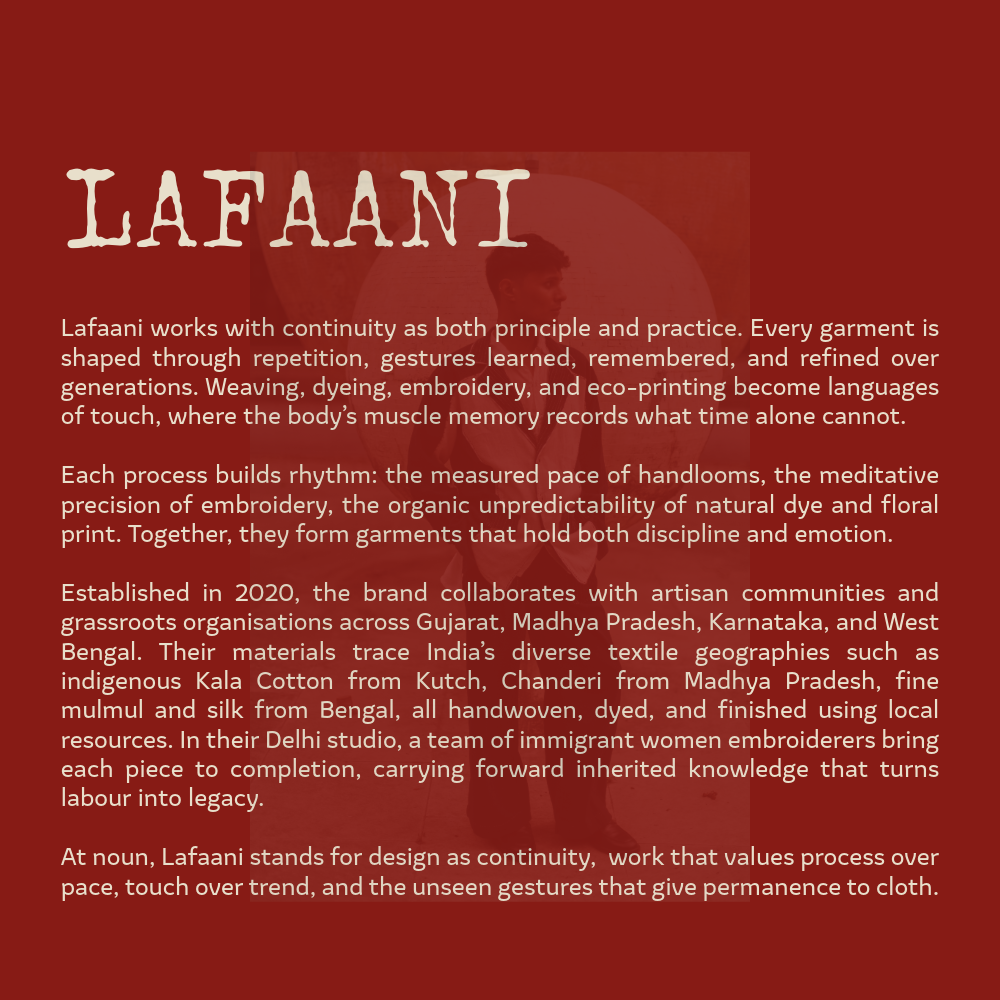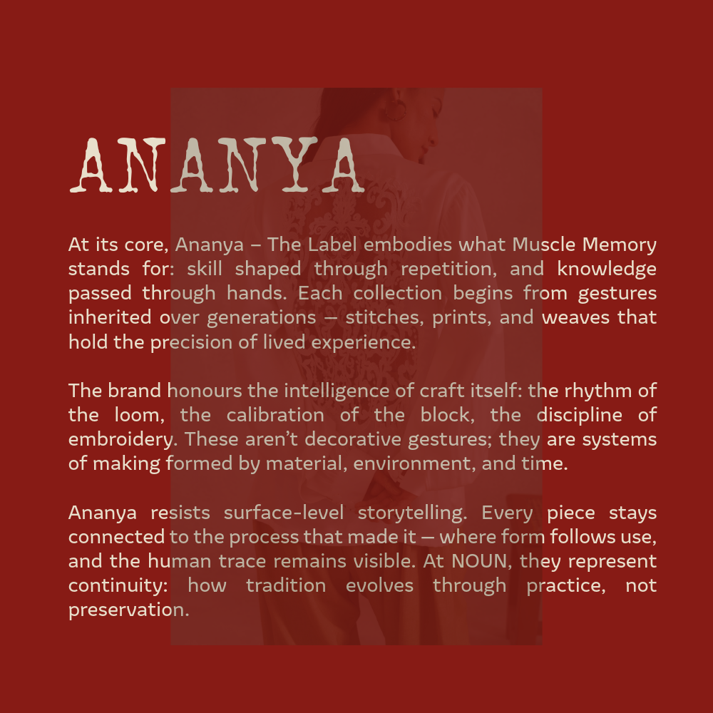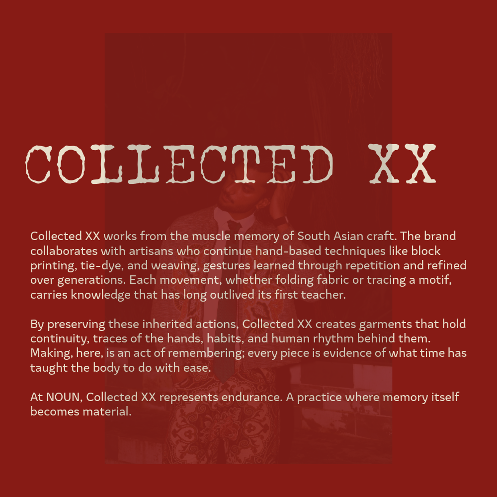 This chapter brings together makers and brands who work through these inherited motions, where process is language and material becomes record. Each piece reflects the persistence of practice as a living form of knowledge.