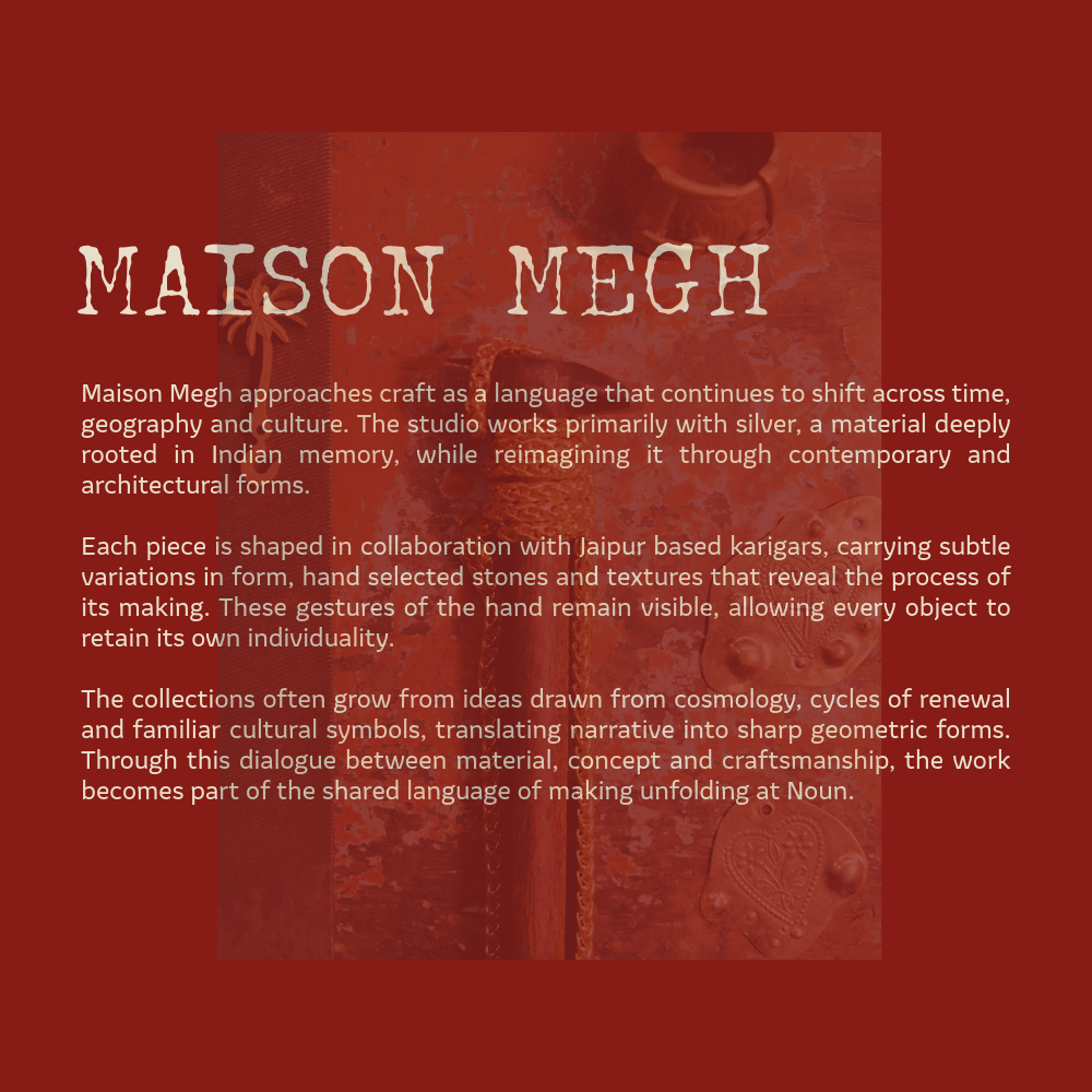 The works gathered here reveal these translations. Processes that hold the marks of labour, textiles that carry the logic of the loom, metals and fibres shaped by inherited skill. Each piece speaks through the intelligence of its making.